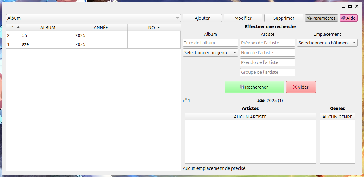 Vous pouvez associer à chaque album : des artistes, des genres ou encore un emplacement.