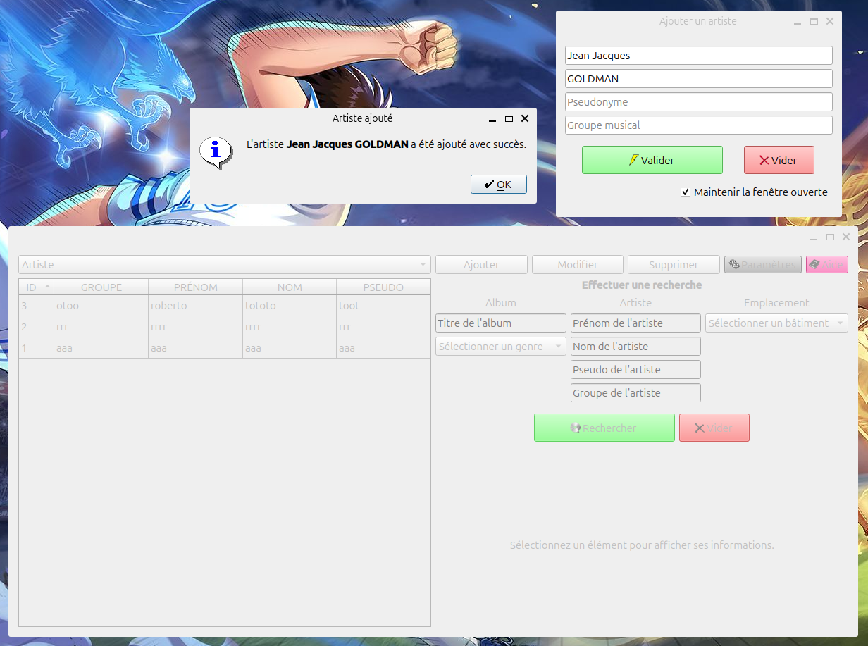 MonAlbumMusical est un logiciel permettant de répertorier ses albums de musiques, et retrouver facilement toutes les informations nécessaires.